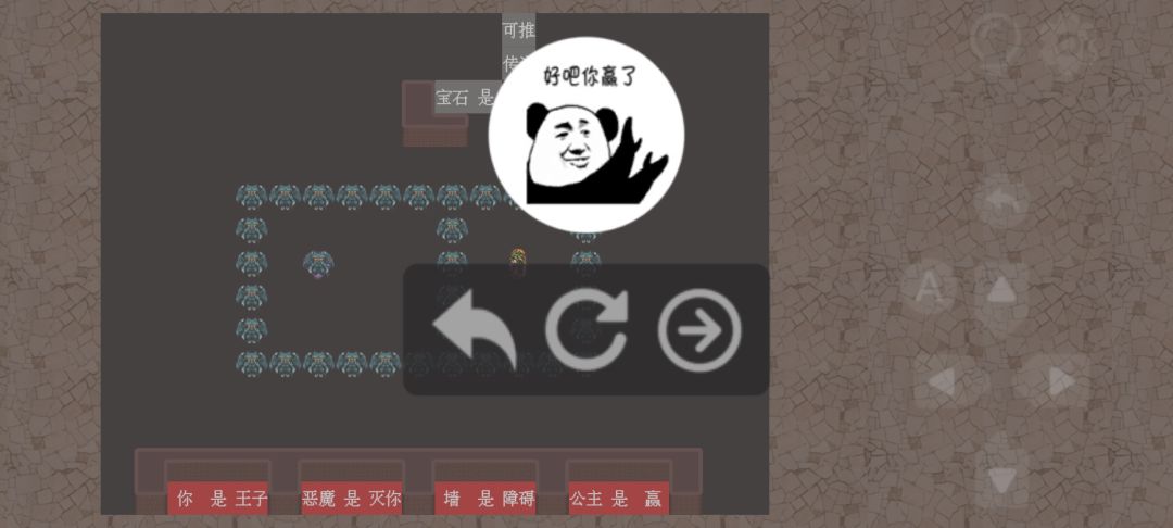 3、按图3所示,推动文字组成“宝石是传送”,然后再破坏它,这样就能把【宝石】处的【恶魔】传送走,即可通过【宝石】,接触【公主】过关