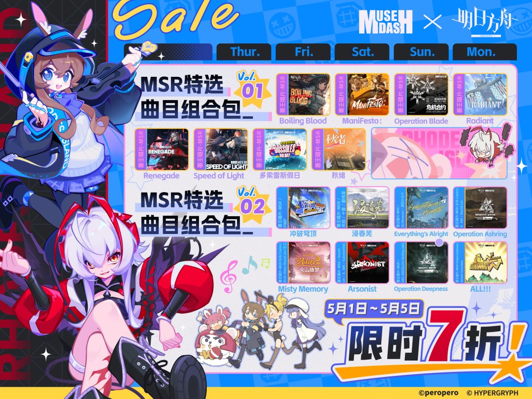5 月 1 日 ~ 5 月 5 日,Muse Dash × 明日方舟联动曲包限时 7 折!