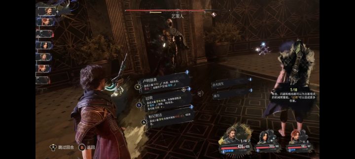 开局四个行动点,先操控角色普攻任意怪物,攻击+2行动点、回合+1行动点,额外回合直接使用【至臻击破】,优先干掉最弱的怪物。