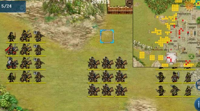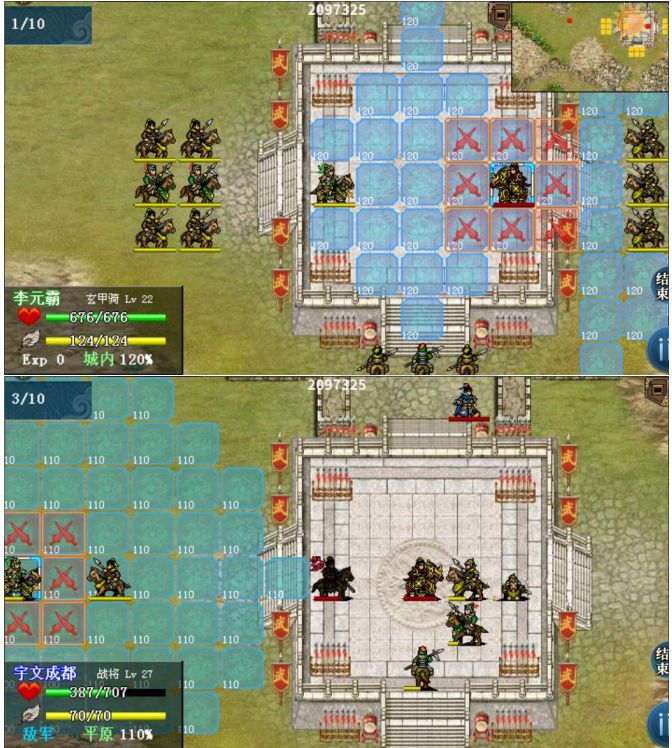 提示:如果是从下往上接近宇文成都前方的“重骑+破甲”部队,该部队会主动出击;