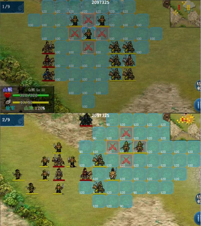 下一回合,右上,右下出现敌军。
