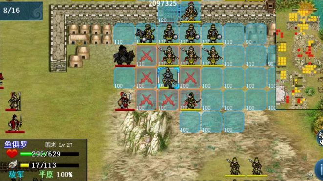胜利目标:在敌军不能进城、我军不可阵亡的情况下,18 回合内,将敌军总数压制至 100