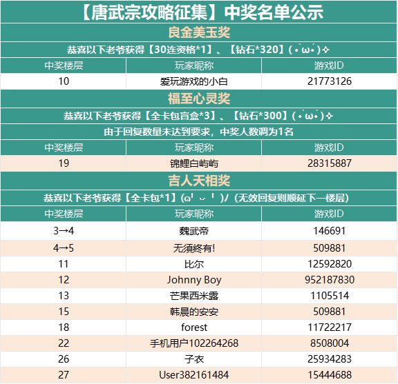 各位老爷可通过评论的方式,留下游戏ID,回复相关内容至本帖下方,即视为成功参与活动!(仅限回复1次)