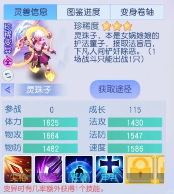 参考宠物图鉴,成长不低于113,变异五技能,物攻和速度资质全满,体力资质不低于1550,双防随意。