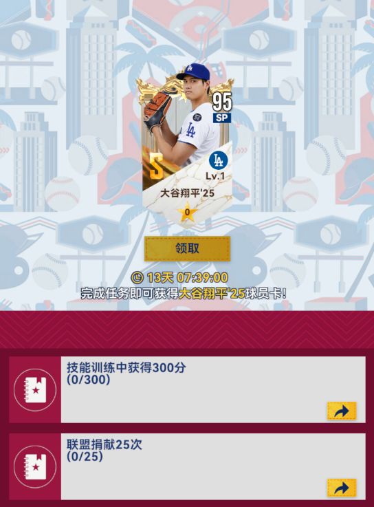 活动开启期间,玩家完成SP位置大谷翔平所有任务后,可领取1张SP位置大谷翔平卡牌!