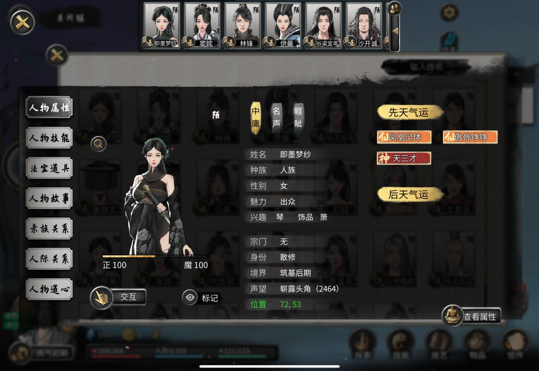 还有那个人物关系页面,给个放大缩小功能很难吗,每次都要划来划去的看。关系排序也是固定死的,就不能让玩家定义先后顺序么。
