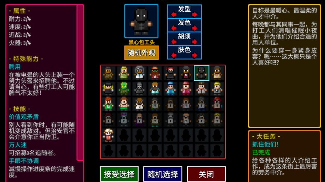 心灵手巧建议角色:夜耗子,治安官,黑心包工头,键盘侠