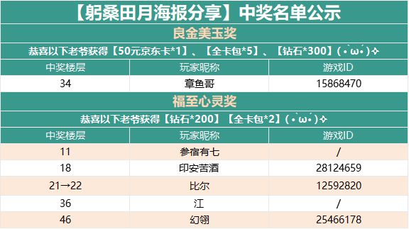 感谢大家的热情参与,中奖名单新鲜出炉啦!