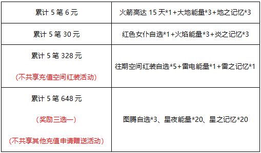 活动规则:5月1日-5月5日,累计5笔对应档位充值即可获得奖励,每种奖励仅可获得1次(例如:5月1日-5月5日累计充值5笔6元档位即可获得对应奖励)