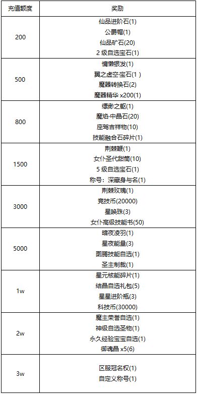 活动规则:累充达标可获得相应奖励以及低档位所有奖励