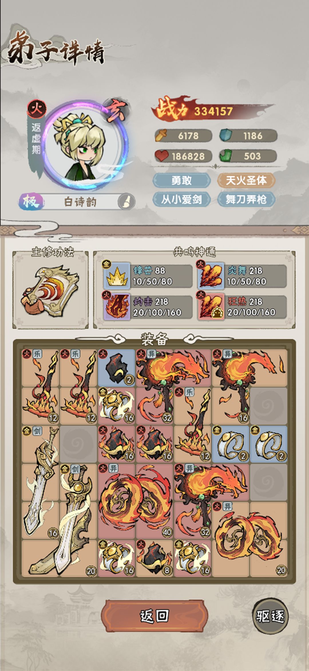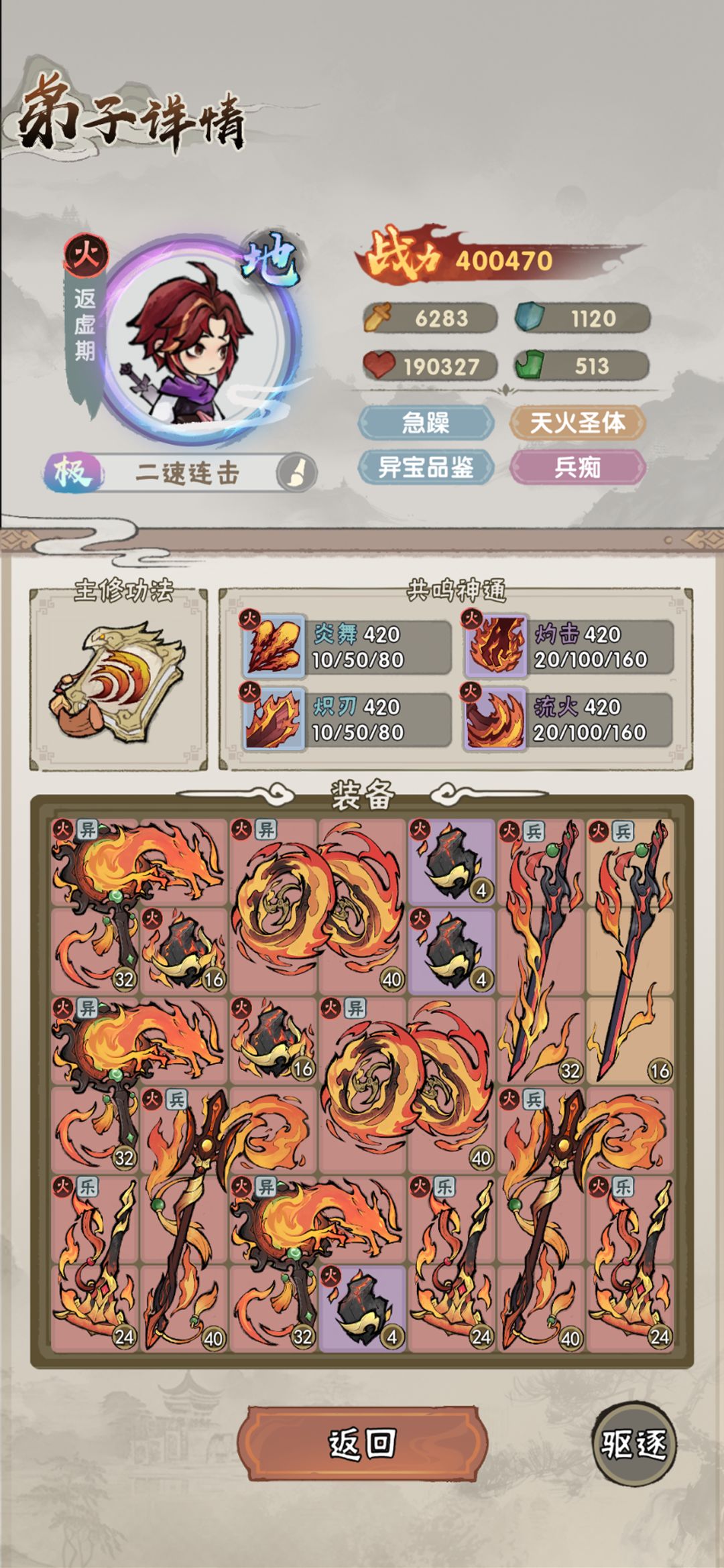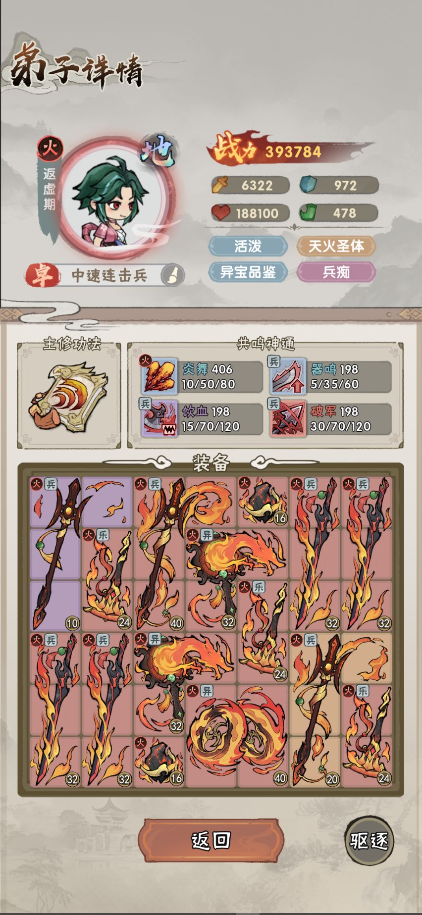 点评:与暴击兵区别是靠连击打输出,也是残血开始发力,优点是对速度要求不高,甚至要确保后手来控血线,在打水系这种反击很康特频率输出队的弟子时有奇效。缺点是因为残血才发力因此很怕土系控制