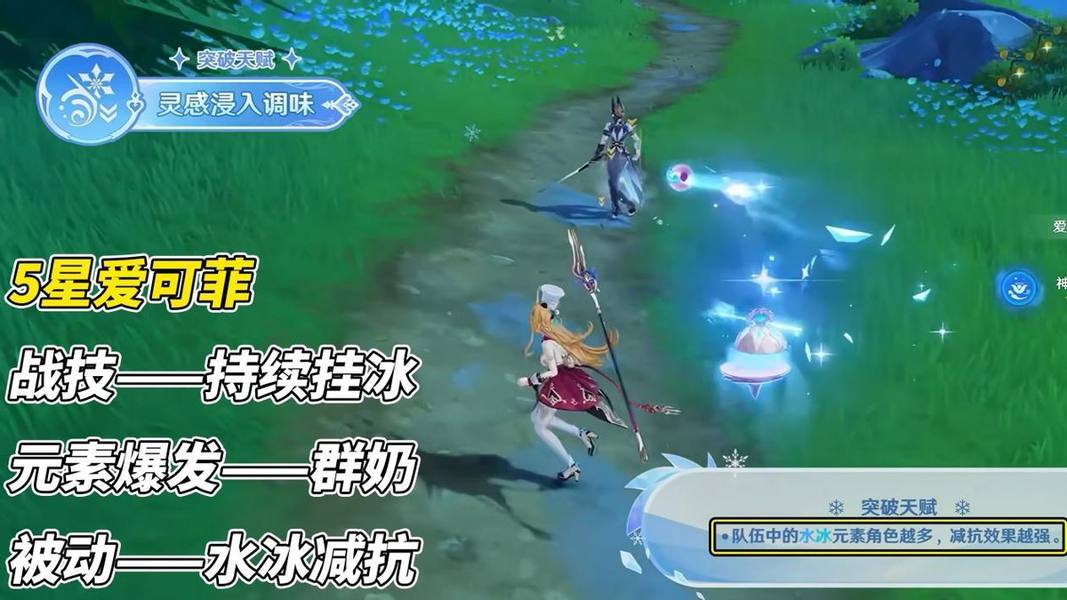 爱可菲(5星、冰元素、长柄武器角色):全新的减抗生存位,除了元素爆发带来的群奶效果、战技持续挂冰,爱可菲还将根据队伍内冰或水元素角色数量,提升技能带来的水冰减抗效果!喜欢玩永冻流派的玩家别错过,苦冻结无增益许久,爱可菲来救你咯~