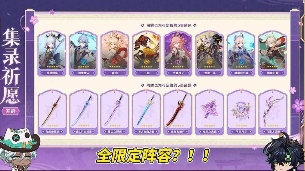 【稻妻混池】神里绫华、神里绫人、宵宫、千织、八重神子、荒泷一斗、珊瑚宫心海、枫原万叶,以及这8位角色对应的武器UP。