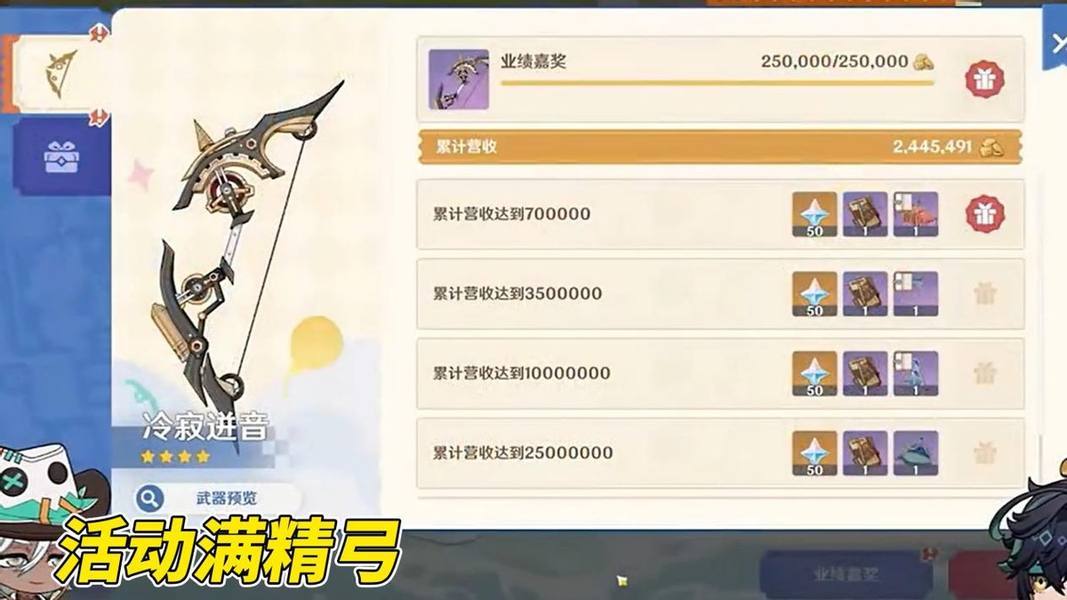 ※特殊奖励,活动限定4星满精弓‘冷寂迸音’。