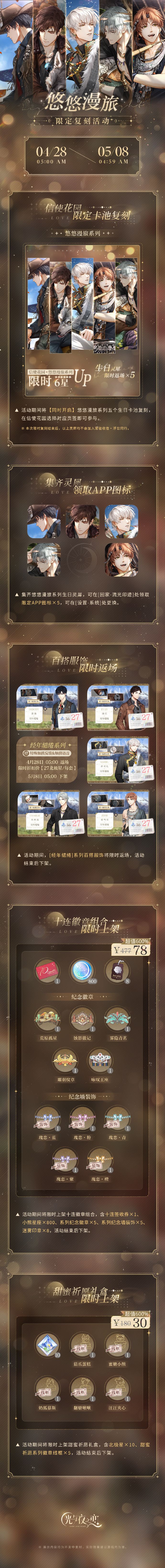 > 复刻说明:活动期间将【同时开启】悠悠漫旅系列五个生日卡池复刻,在信使花园选择对应页签即可参与。