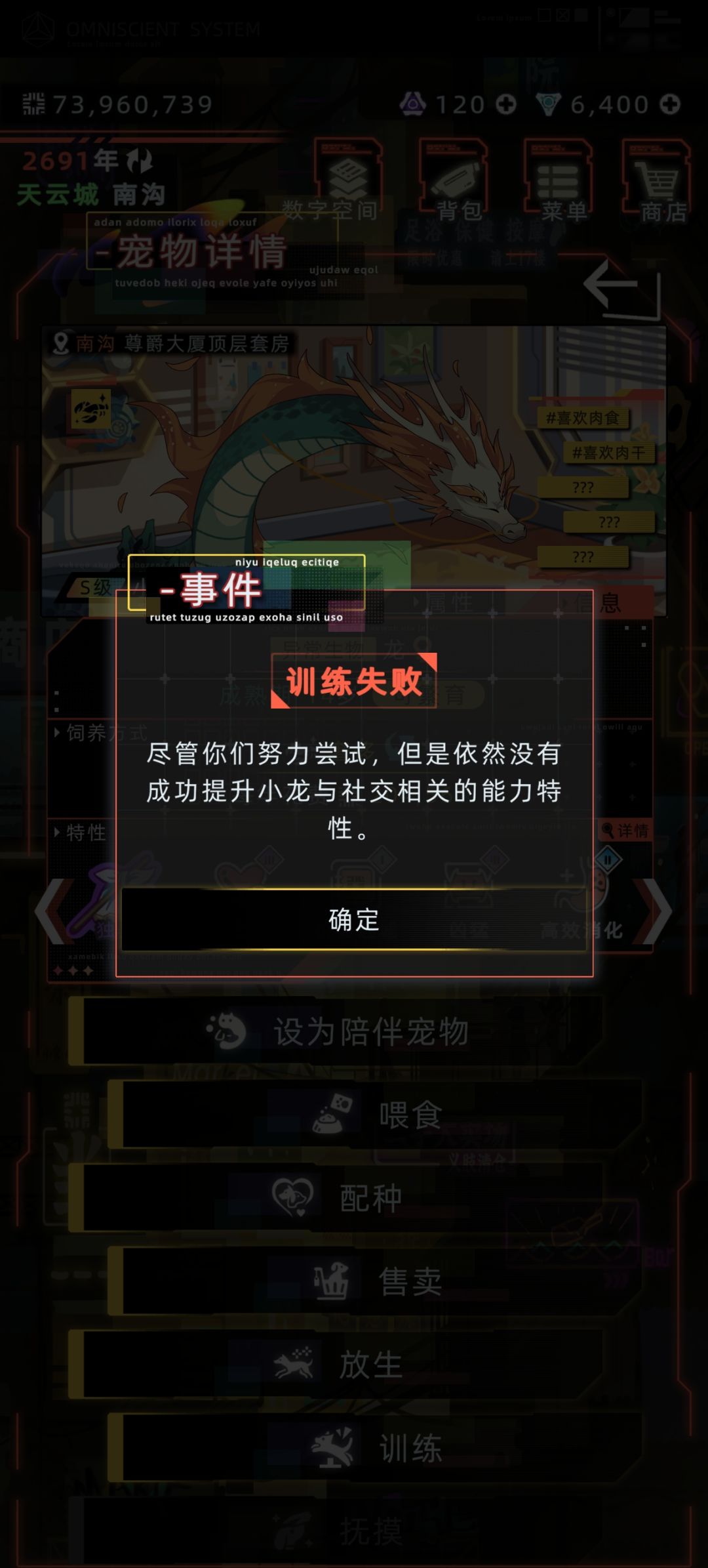 是这样的,我买的小龙价值连城只有1我想刷到满级,点培养经济属性,但是跳出来的是社交属性培养失败,请问这是bug嘛,已经好几次了