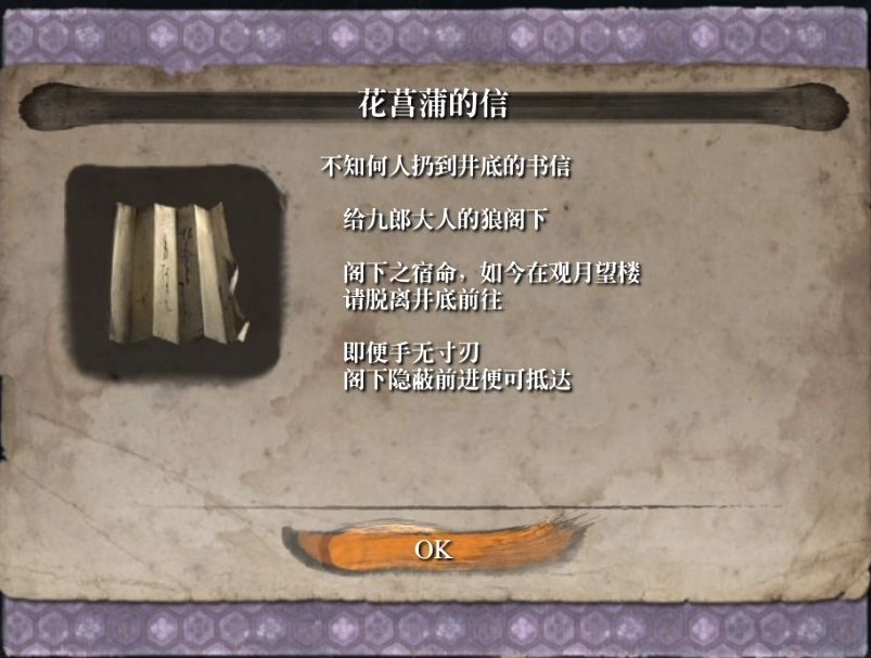 首先捡起地上的道具花菖蒲的信(就是刚刚小姐姐丢给我们的)。
