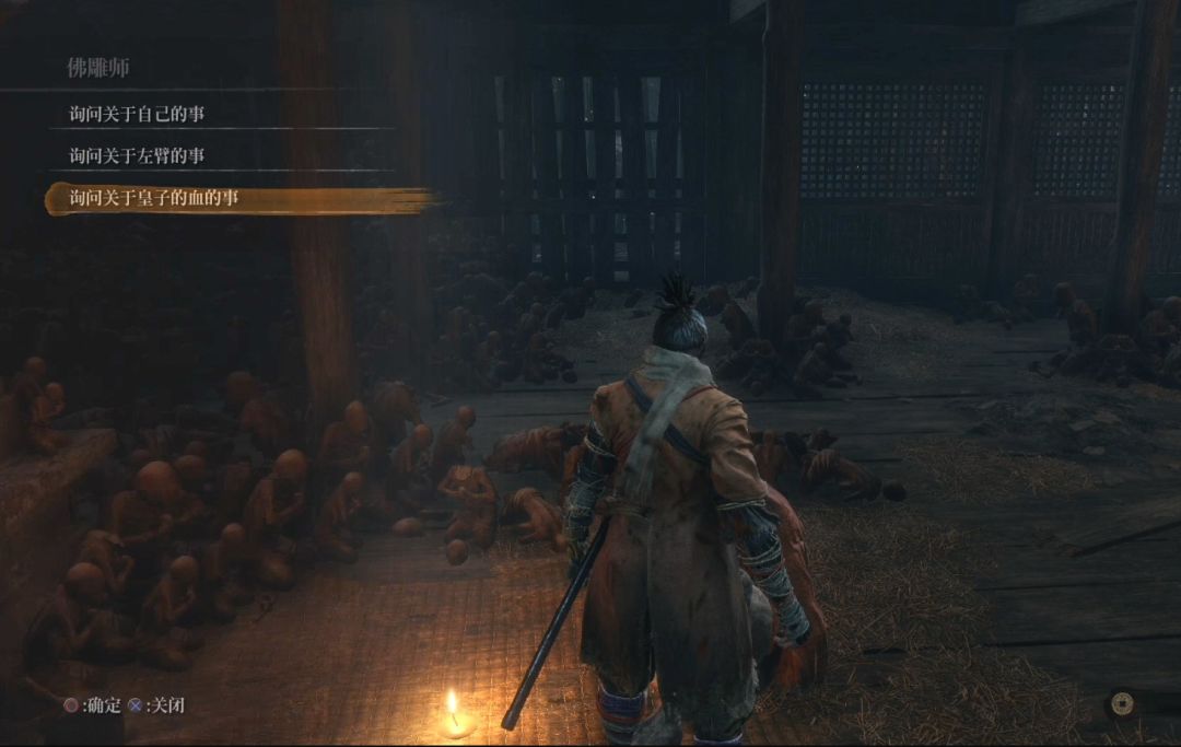 剧情结束后,我们可以询问佛雕师(老者)各种问题,包括关于自己、义肢以及皇子之血的事情。