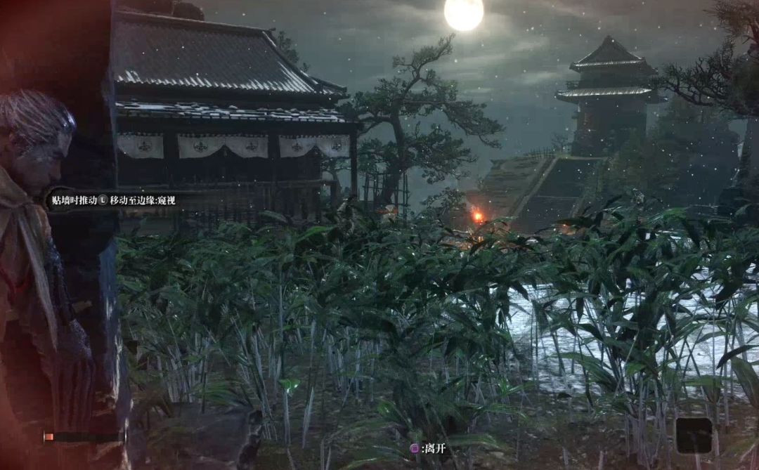 获取信息后,从地板的另一个出口,沿着草丛离开。走到下图位置,也可以偷听情报。得知观月望楼有一个洞可以进入,而洞口在悬崖边。
