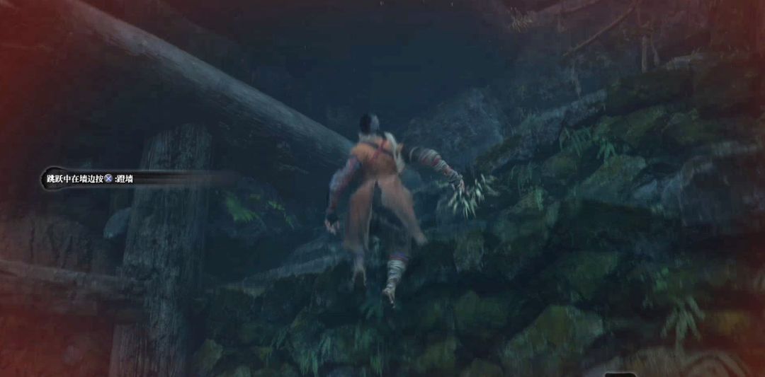 接着向前方走,离开洞穴,在跳跃的过程中在墙边再按跳跃键可以蹬墙进行蹬墙跳。
