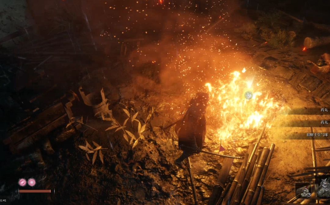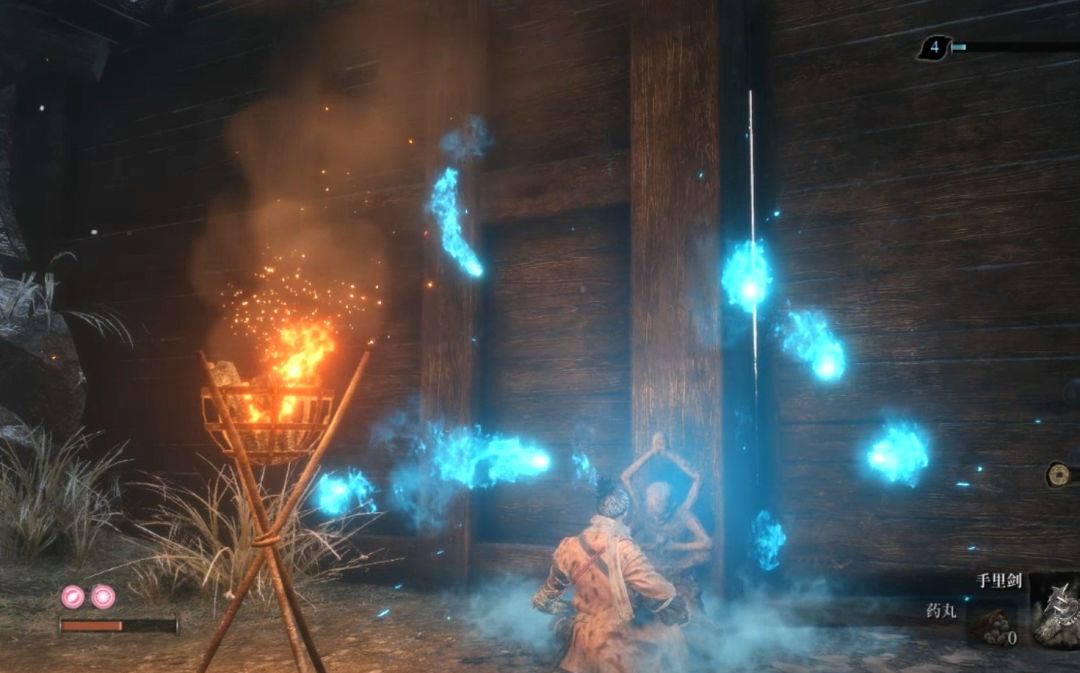 这里的敌人清理完之后,在篝火初获得吹火筒,用来改造忍义手。其他道具收集的差不多之后,继续向前走。