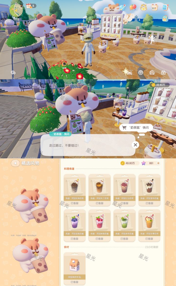 限定食谱和限定主材料在文艺街“奶茶鼠”快闪,点击菜单就可以购买(限定食材一天150份)如图1