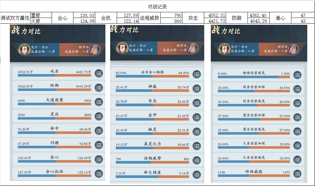 总所周知,雷修基本法体10%的神通会心率以及会心必定增伤,对雷修的伤害,有了大幅度的稳定。青龙的15%的会心率 对雷修有多大影响呢,不废话直接上测试结果。