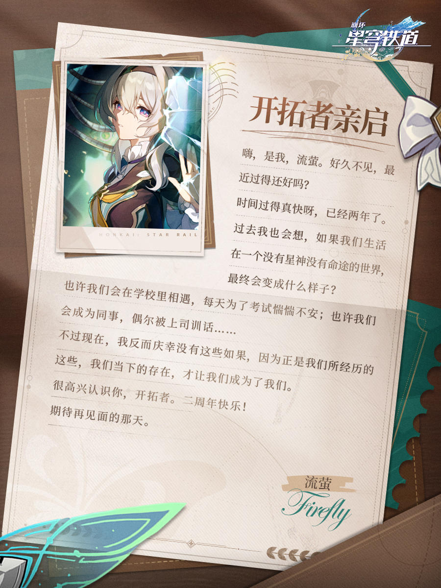 开拓者乘客,时间过得真快帕!今天就是星穹列车重新启航的二周年了!