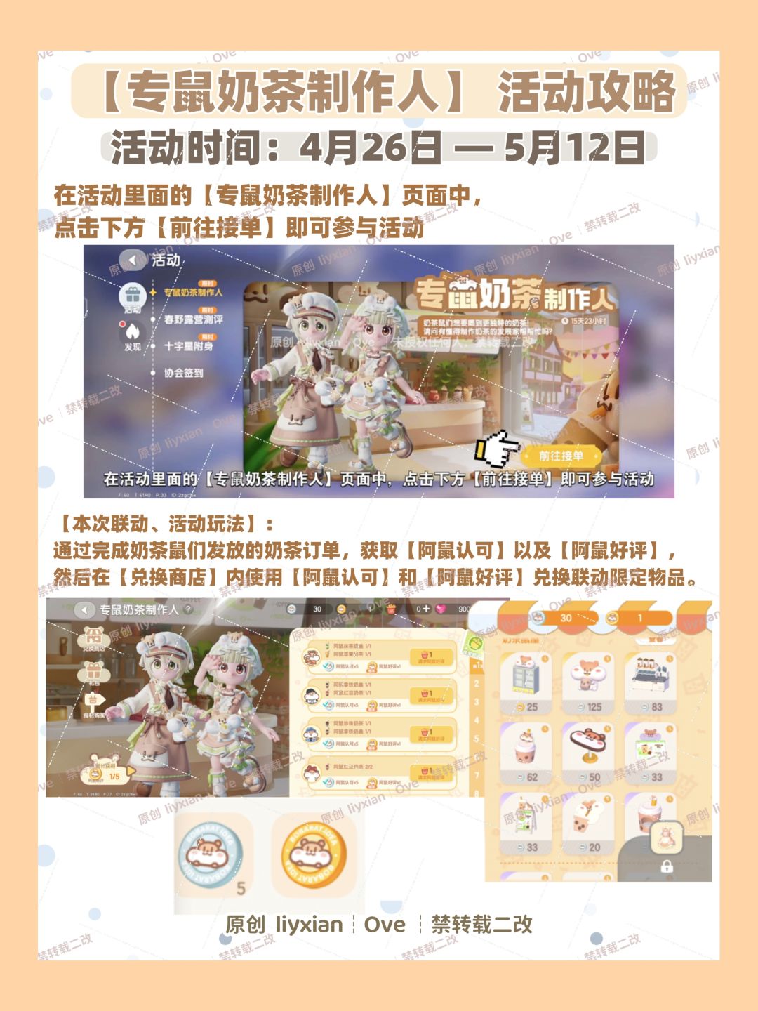 4月26日至5月12日,开启和【奶茶鼠的想法】联动活动。活动一共16天。