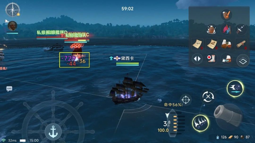 装备特定火炮可触发火灾、破帆、烟雾、重伤、破舵等状态。