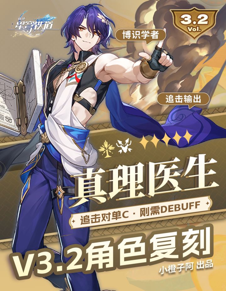 哈喽喽,这里是小橙子阿,本期是将是真理医生的角色复刻一图流攻略!图文包含真理医生的角色简析、光锥选择、星魂解析、遗器以及队伍搭配。