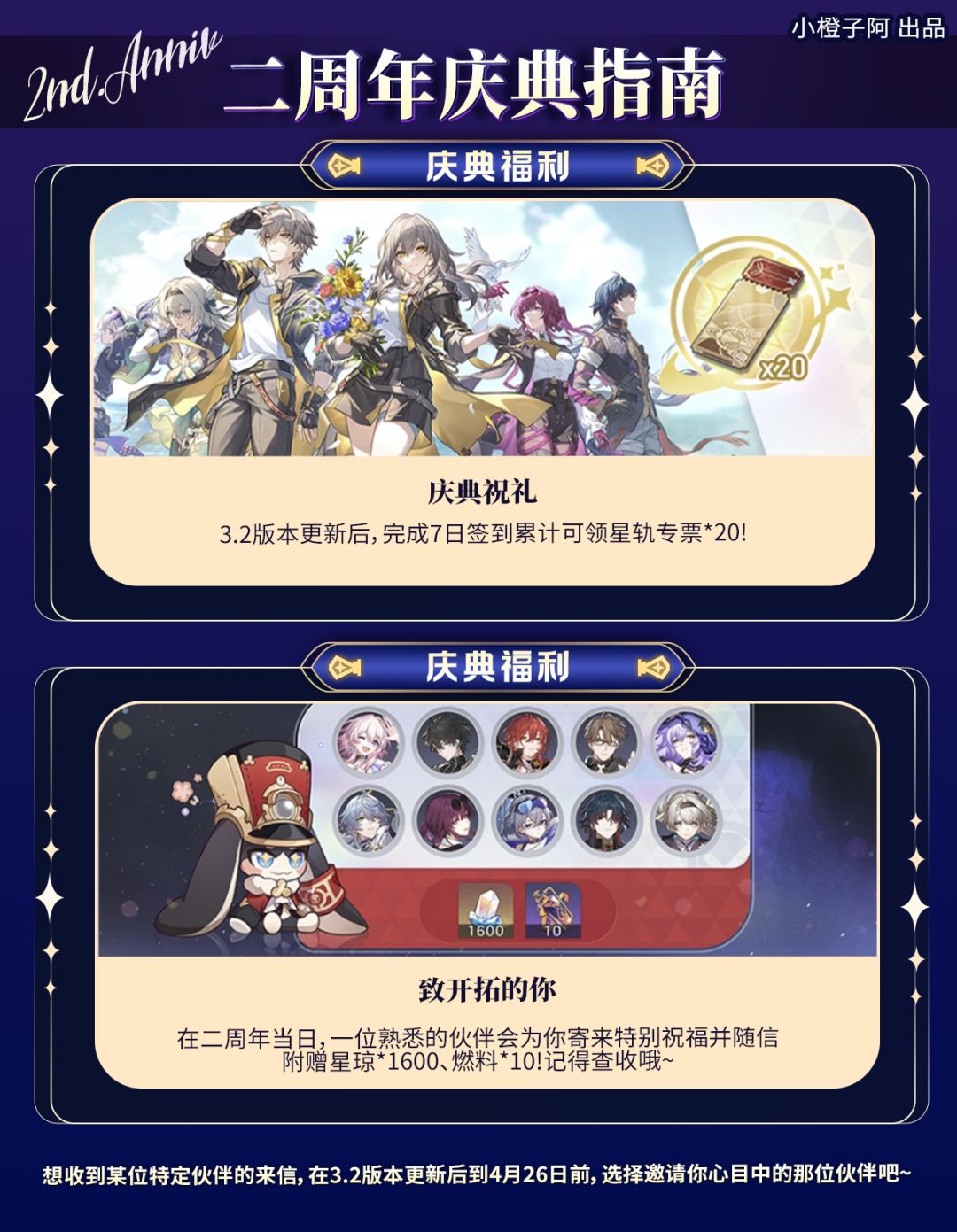 今天是与列车相遇的2周年纪念日了,祝星穹铁道二周年快乐!