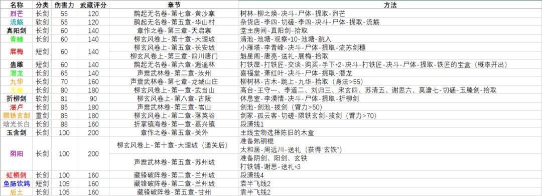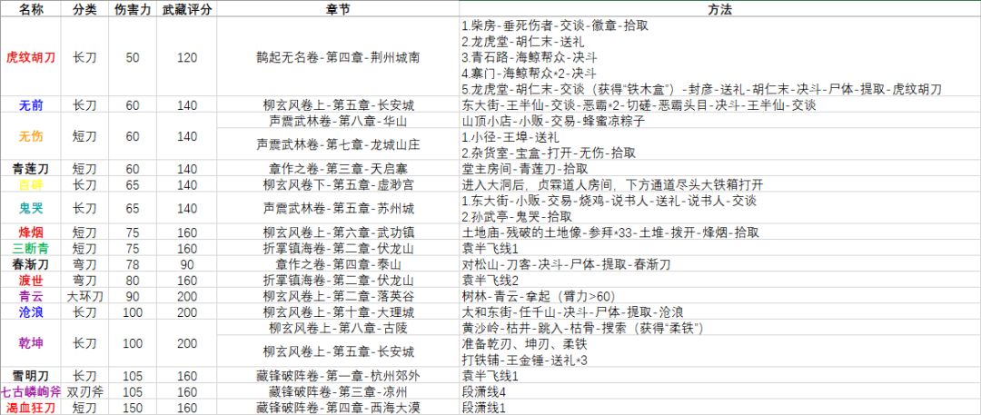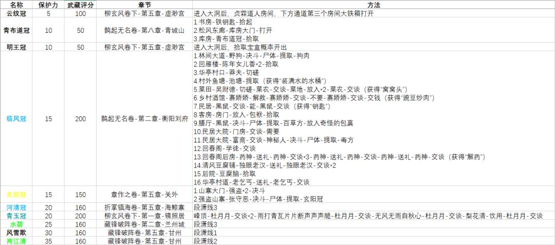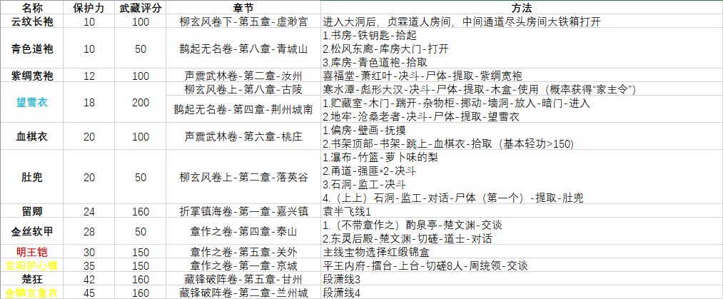 为了凑玄络对武藏评分的要求,我把前四十章的章节装备获取方式整合了一下,全收集完成的武藏评分能达到14695,评价武库充实。加上梦境任务、重光任务掉落和折掌镇海、藏锋破阵的装备,很容易就能达到紫电清霜。