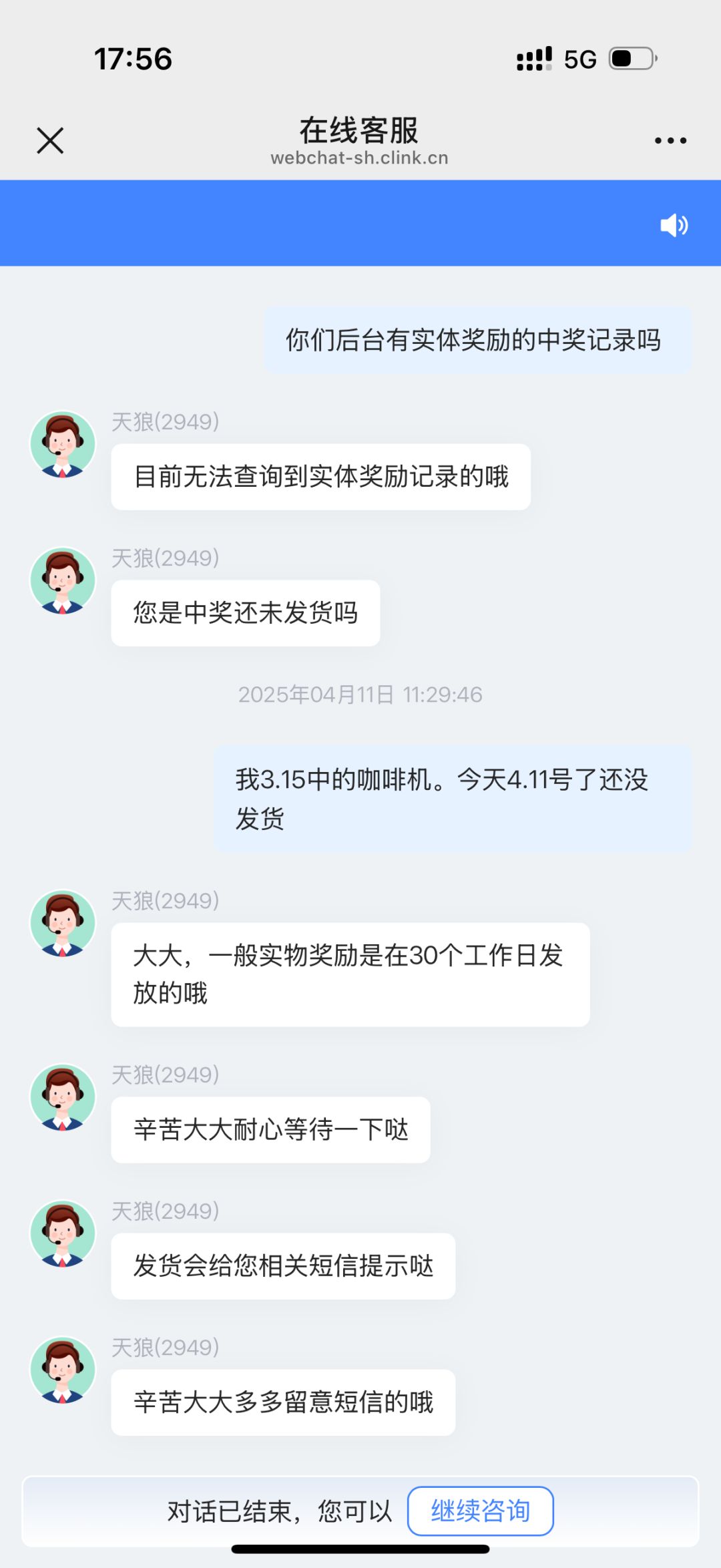 我3.15中的咖啡机。页面提示20天内发货。未发问客服说30个工作日。距今已经29天工作日仍未发货,又答复这个月陆续发货??。我想问一下官方,你们开放的活动中的奖励还算不算数!!
