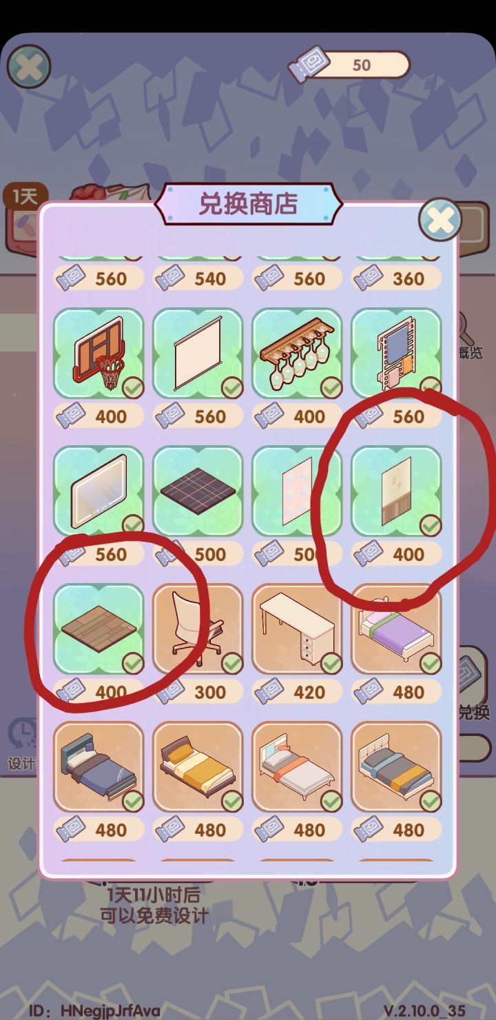 首先点开高级设计,点击p1里箭头指的设计兑换,然后往下滑,看见p2里的圈着的其他家具继续往下滑,直到看见P3的圈着的壁纸和地板就是初级套间的壁纸和地板啦,点击兑换就得到了