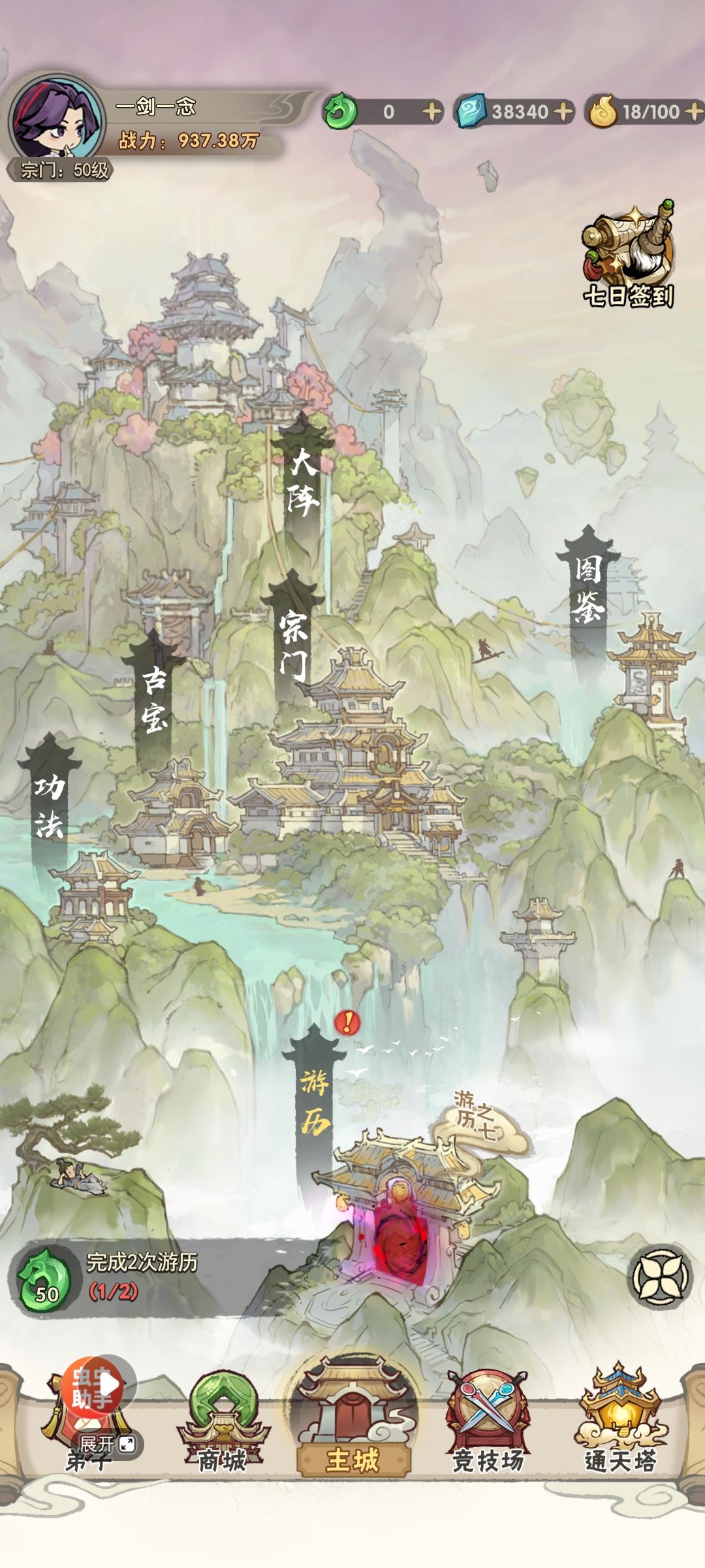 弟子共有5种品质,极品(彩)>卓品(红)>优品(橙)>良品(紫)>凡品(蓝),可以通过使用灵石升级宗门大阵(目前最高等级50级)来解锁更高品质的弟子和提高高品质弟子的出现概率。灵石可以通过游历、推塔、礼包等多种方式来得到,目前最高就是彩色弟子了,初始属性更高,先天词条更强。前期词条占战力比例并不高,所以我们的首要目标是提高宗门大阵的等级,今天咱们就主要来说说游历这方面的内容,俗称推图。