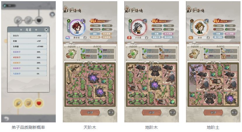 局内装备我们优先选择同系的,成型更快,而且同系装备相邻也会有一定的属性加成,这样可以实现装备战力最大化,游历结束后就是毕业答辩了,分为天地玄黄甲乙丙丁8等(比如甲+,甲-),评级越高所得到的灵石也越多。然后我们再使用灵石提高我们的宗门大阵等级,循环往复,不断的提升我们的战斗力!