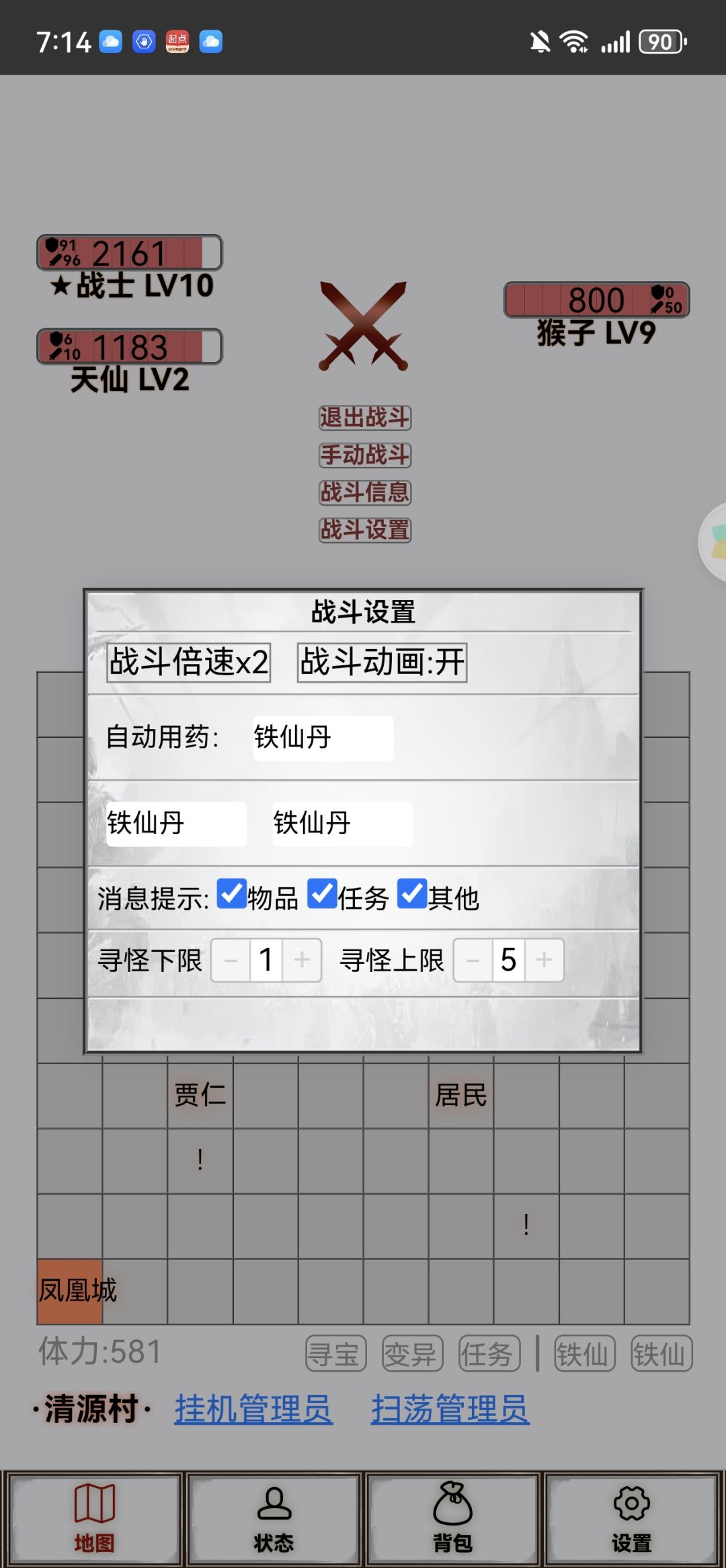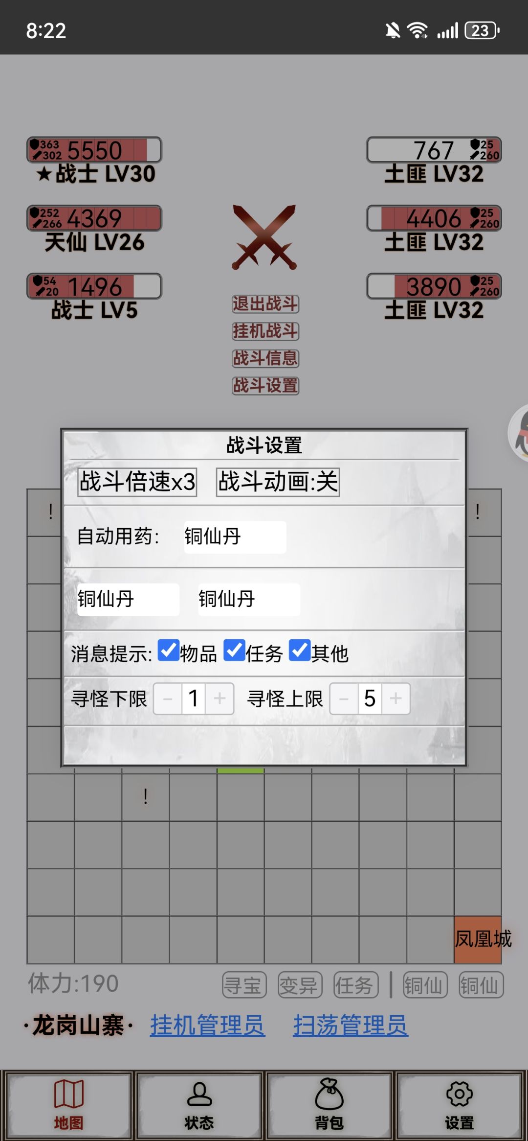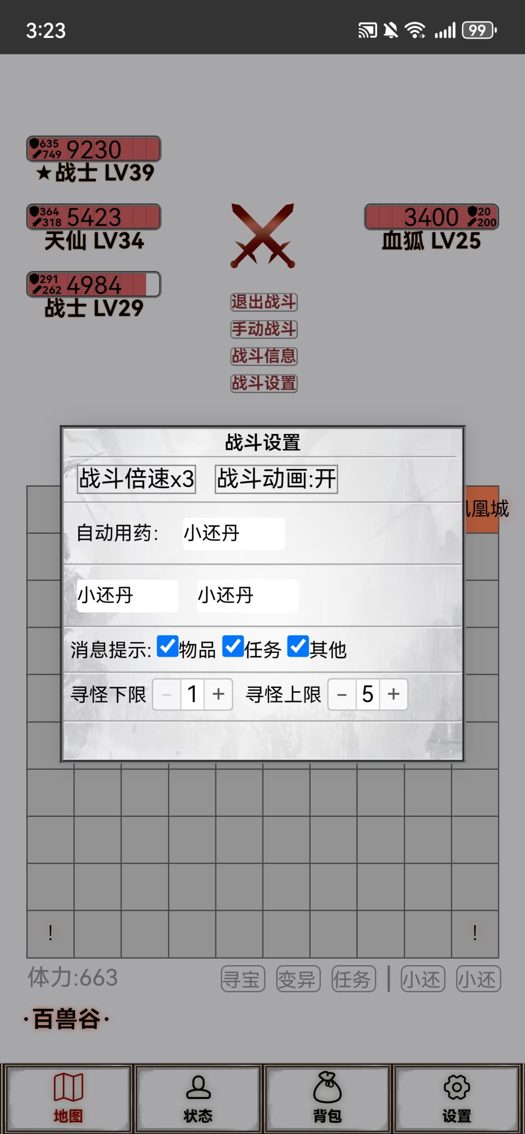 1)先打开战斗设置,此时可以设置3倍战斗速度了,丹药也都可以调整成铜仙丹了,铁仙丹已经彻底没用了。