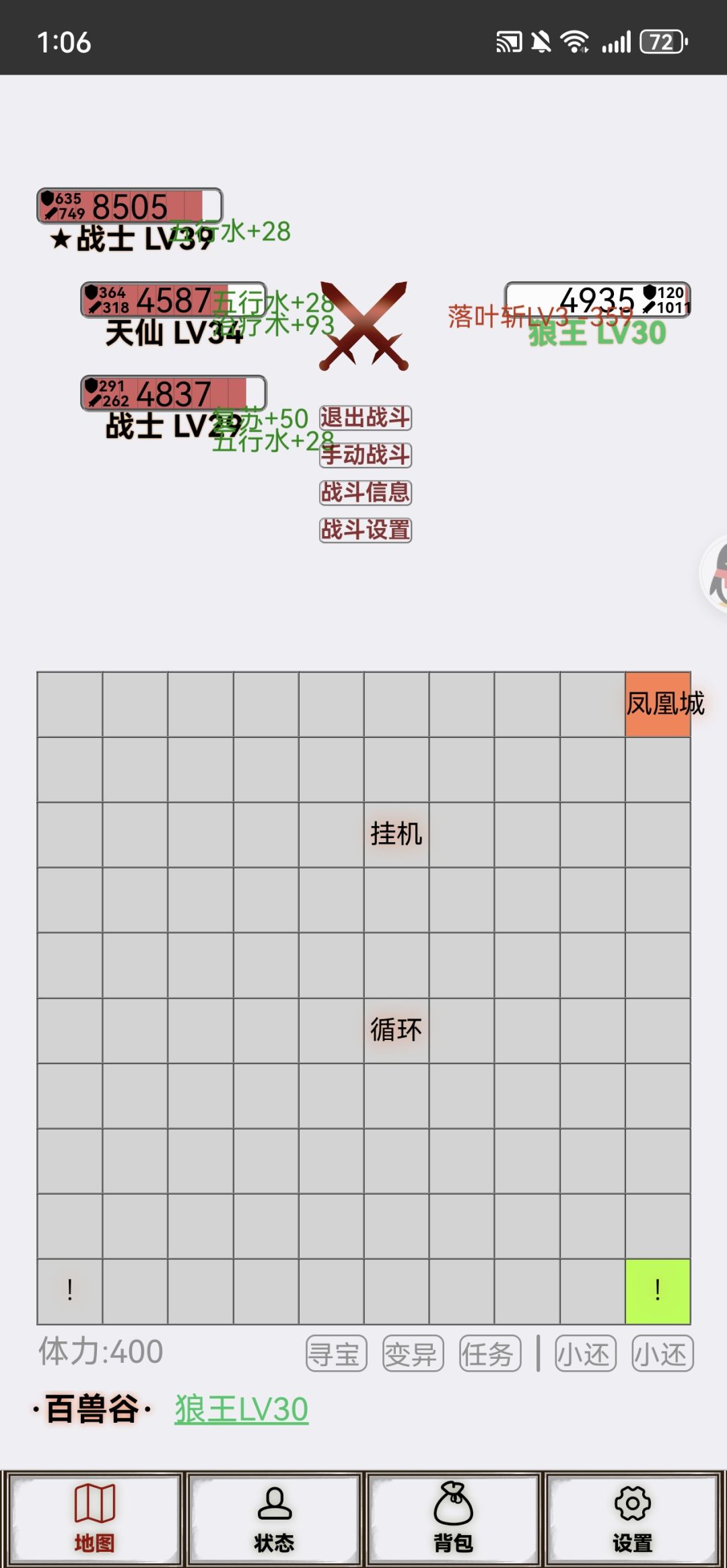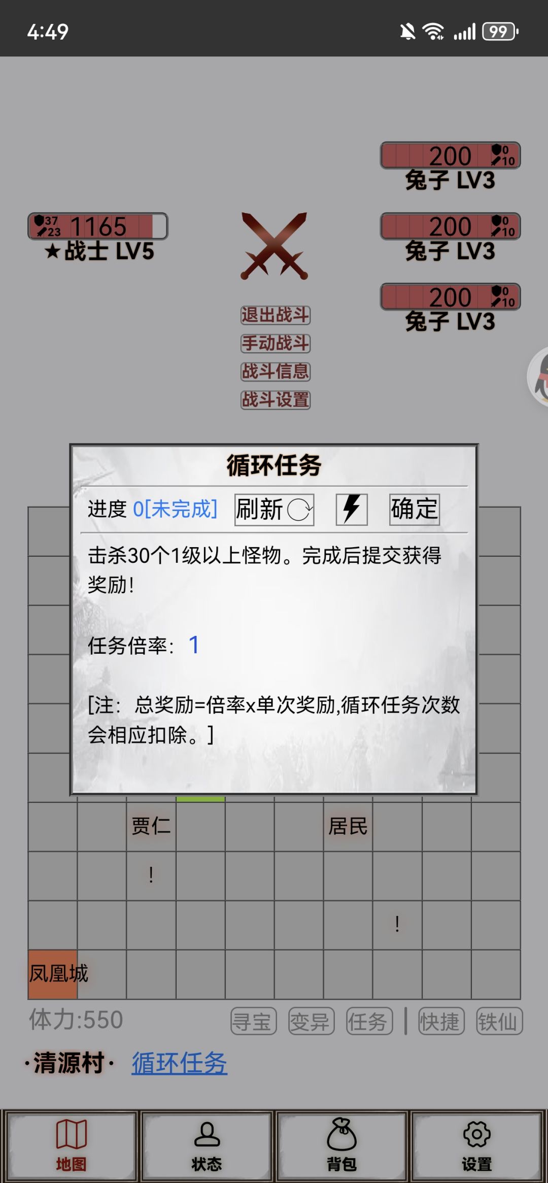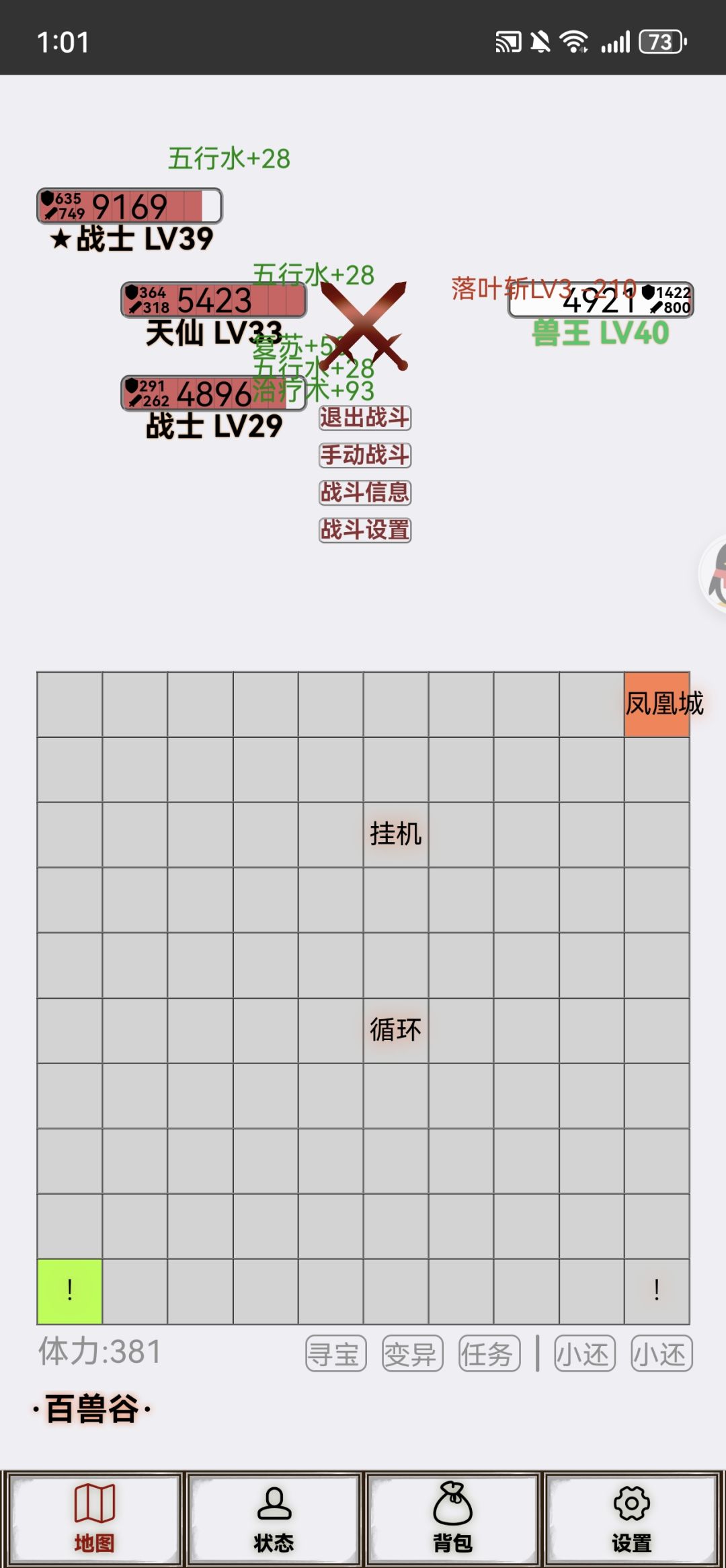 点击一下手动战斗(位于退出战斗和战斗信息之间)会切换成自动战斗,此时每次移动都会自动开启战斗,但依旧十分不好用。