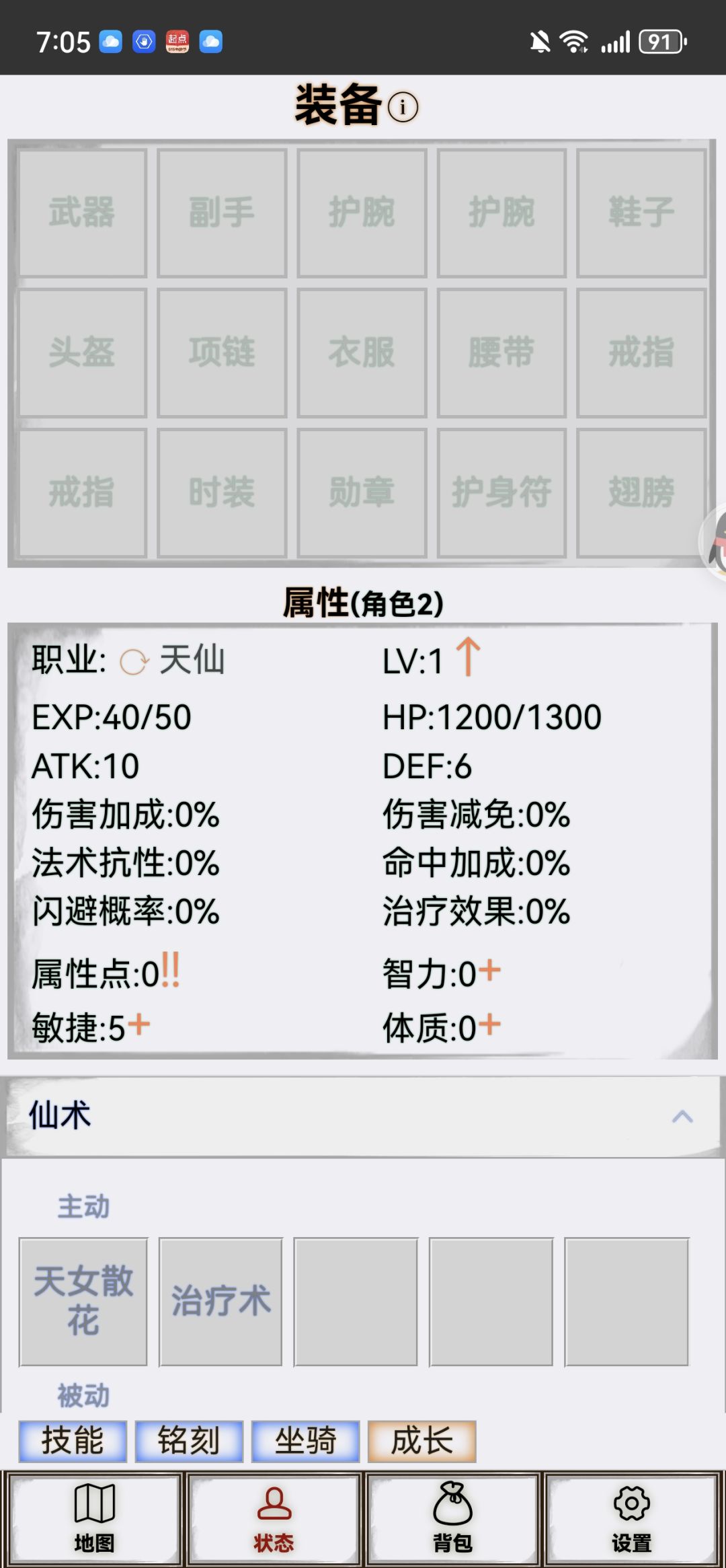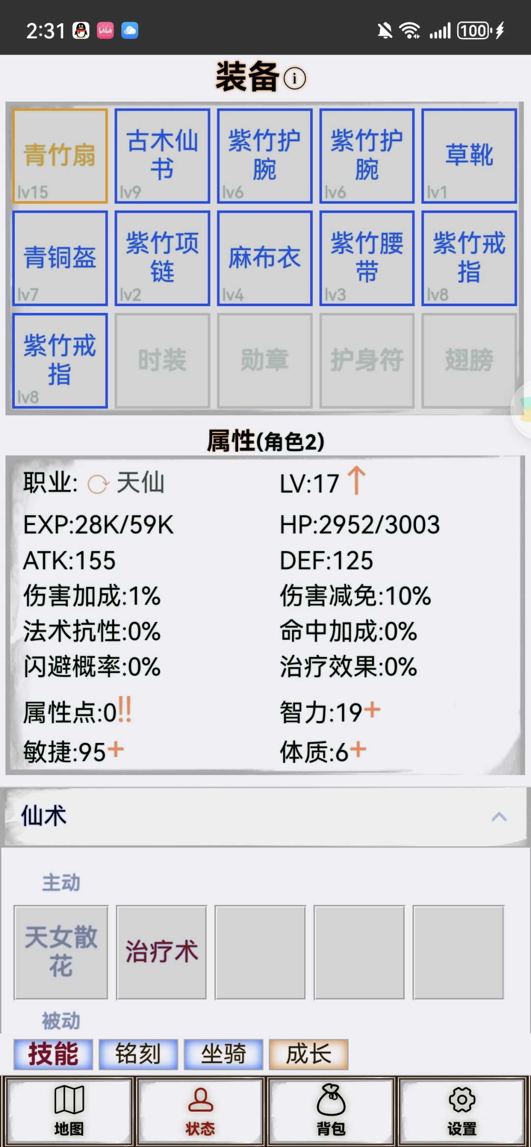 主动技能分为单体,群攻和治疗,单体打BOSS,群攻打小怪,治疗是天仙独有的奶,可花费技能点数进行升级,主动只能同时选择一个。新手期情况有些特殊,后续会讲解新手期技能的选择。