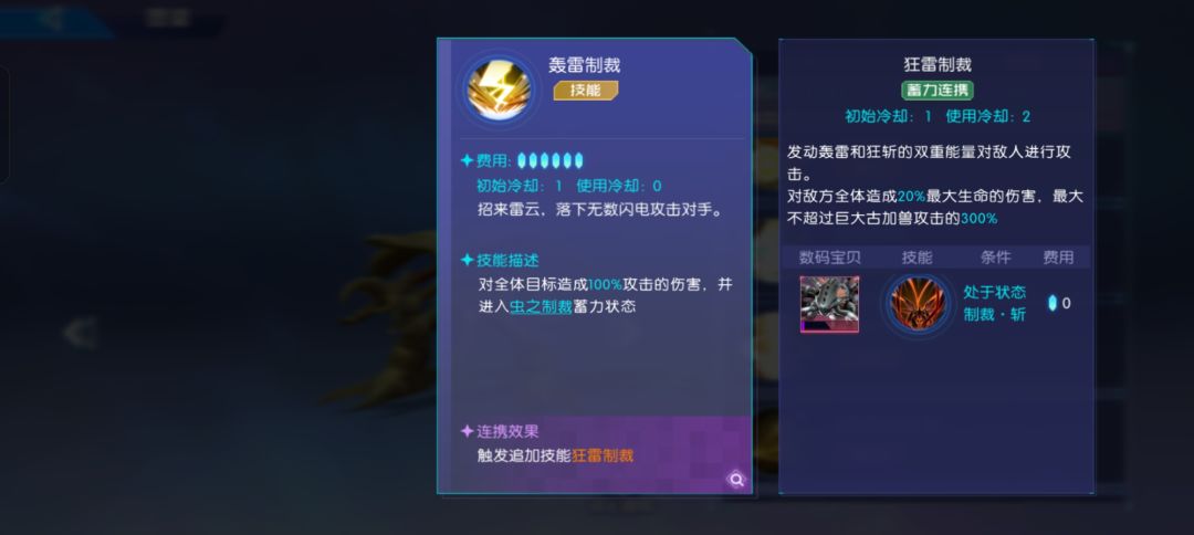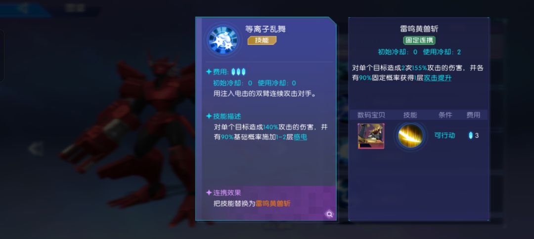 电光暴龙兽 图1(目前只能氪金抽) 很优秀的群攻和单体伤害,和偃月加鲁鲁(还没出)有联动单体技能图7。