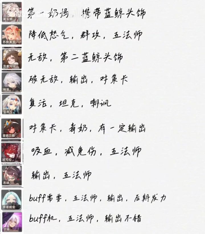 叶菲 小八 菲尼贝斯菲 神橙都是输出角色,把输出堆满就完事了。