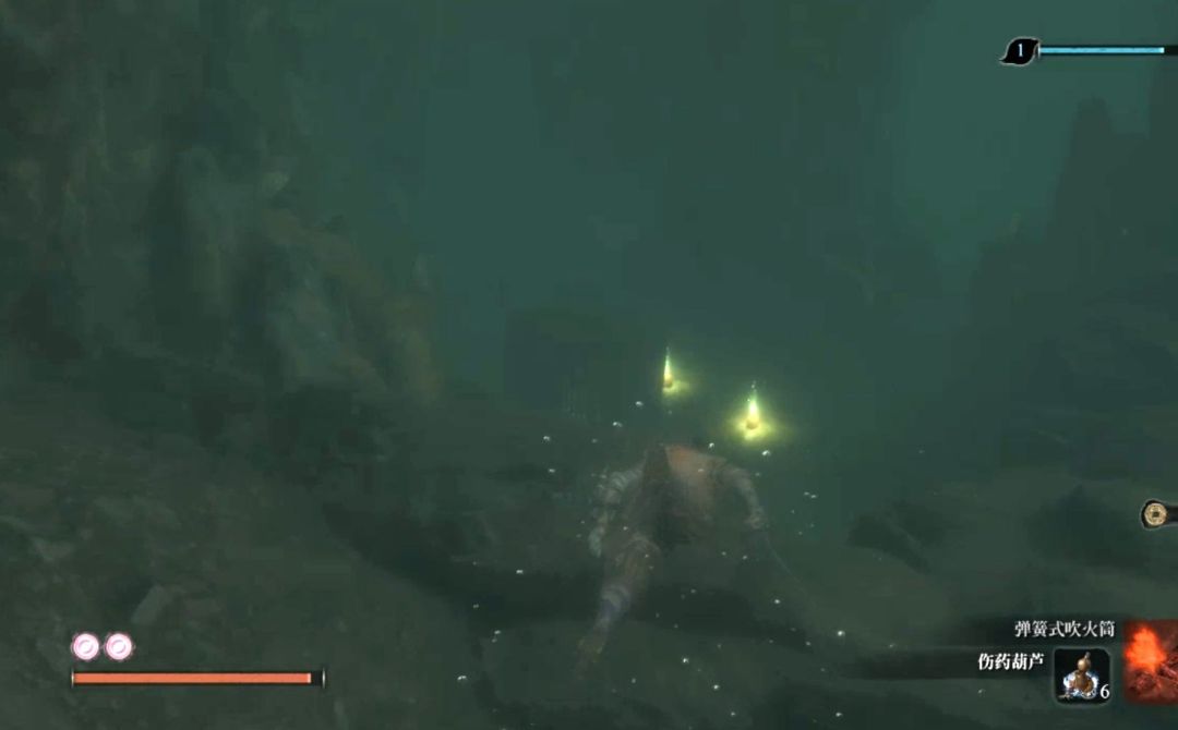 接着传送到投身之所鬼佛,靠着右边的墙直着向前游,不要潜水了,此时水下已经没什么东西了,上岸之后,有两名敌人,先杀远程再杀近战即可。