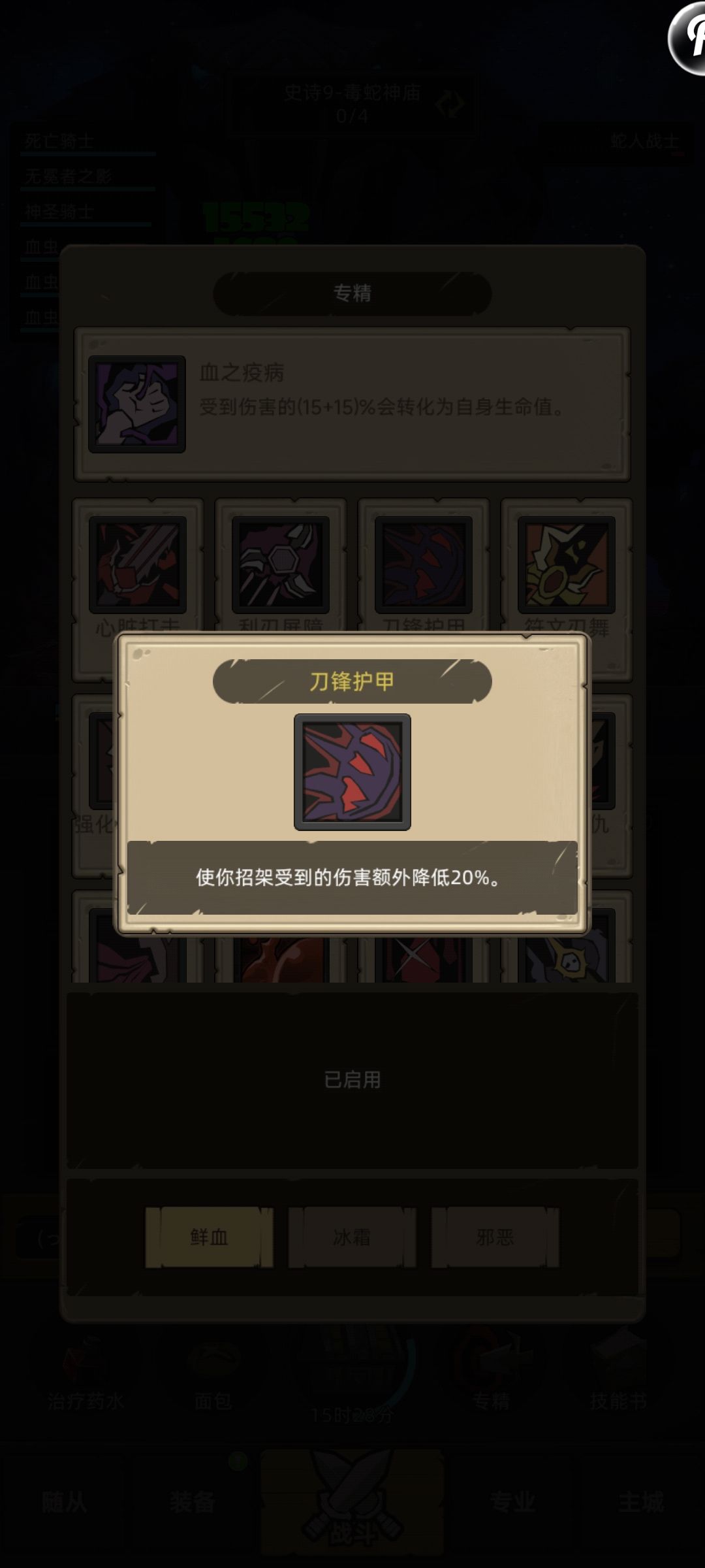 被动技能招架后减伤20,我觉得精通换增伤也能顶住。