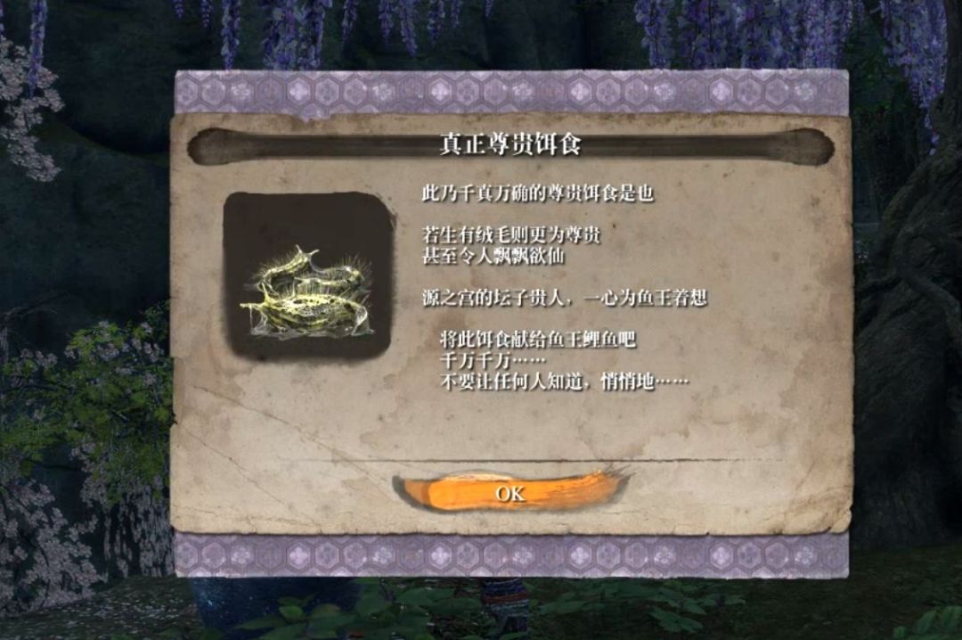 穿过山洞,会遇到第二个坛子贵人和鬼佛。点燃鬼佛,在坛子贵人处花费12个鳞片以上(2次源之琉璃),反复交谈可以获得真正尊贵饵食。