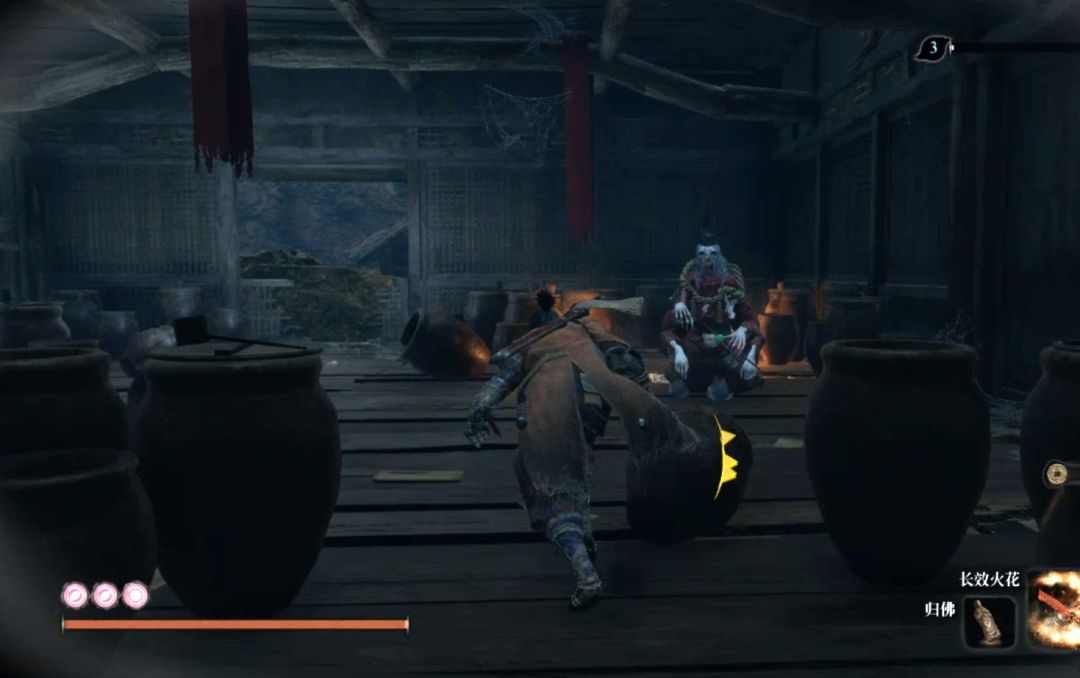 接下来使用爆竹、烟雾弹、鸣种就可以轻松击杀破戒僧了。