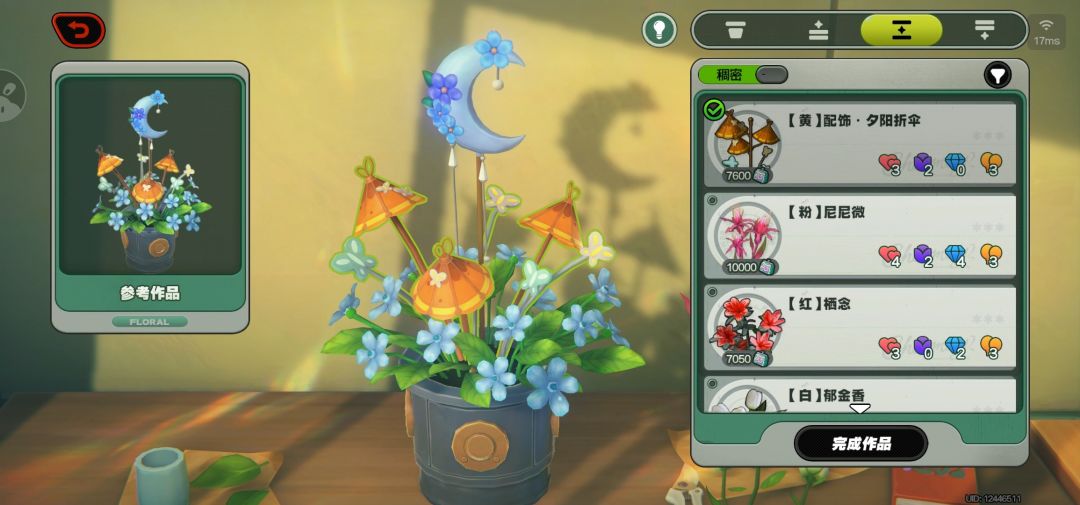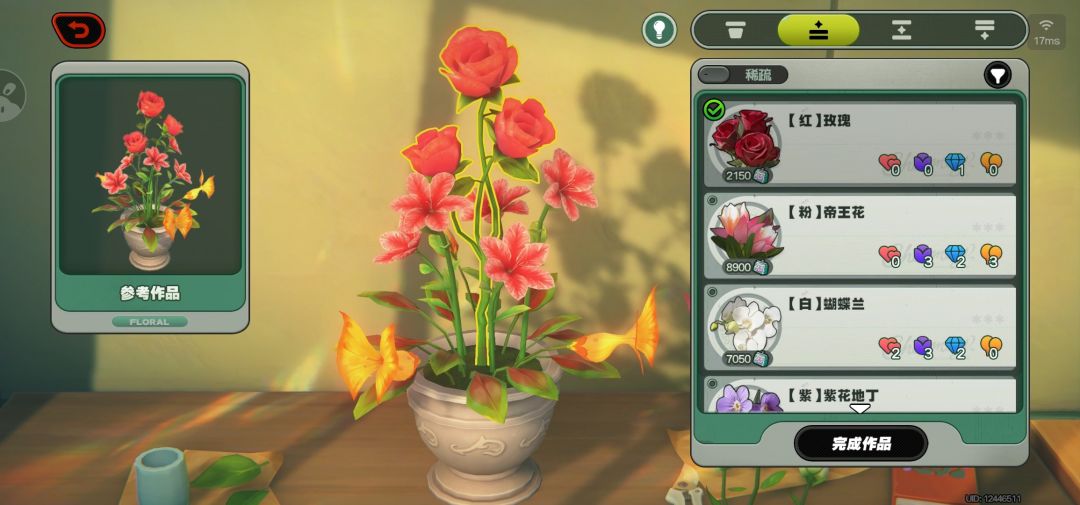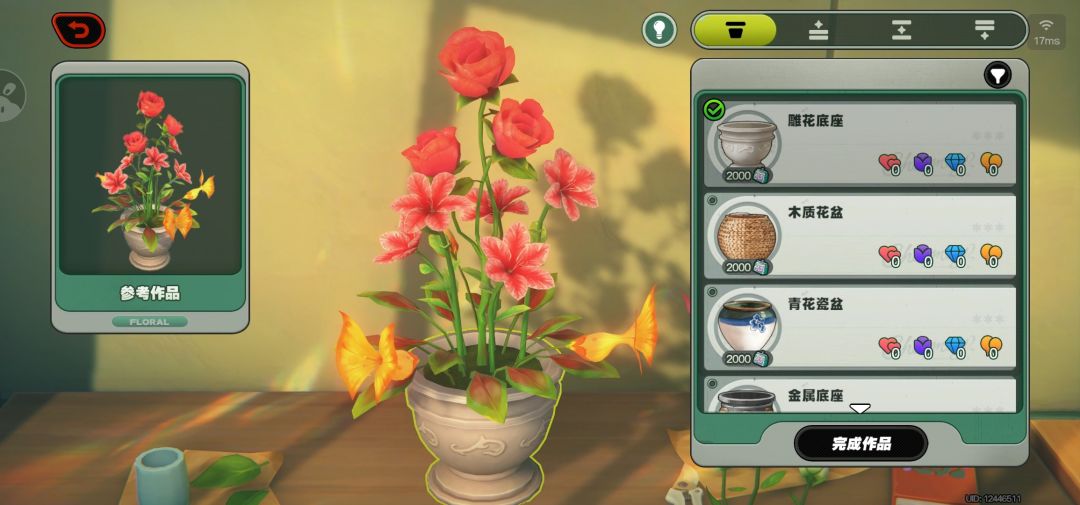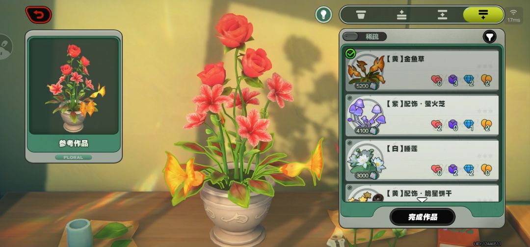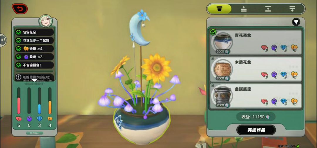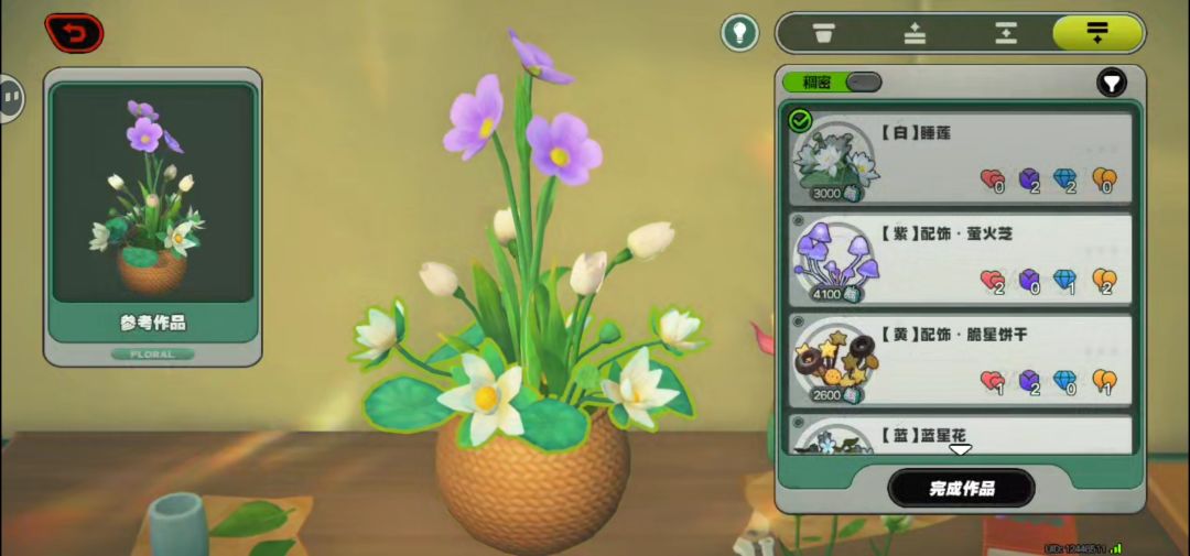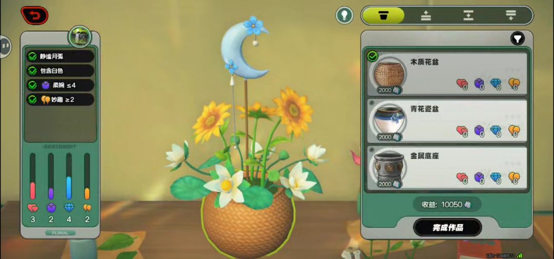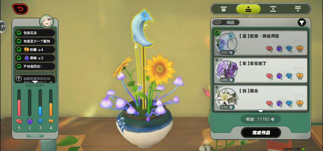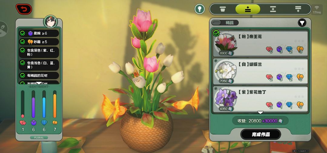- 重复提交已解锁的高价配方(如玫瑰主题花束),挂机收益最大化。