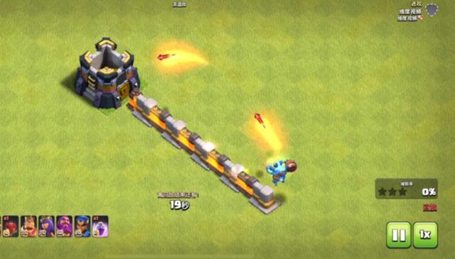 2、破墙:该组合兵种没有穿墙跳跃技能,城墙的阻挡是一大困难点,建议选用地震法术。