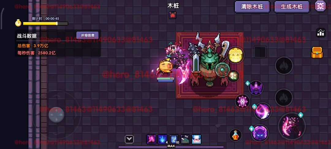 2、前期装备魔女武器+紫技能就有伤害,大大降低萌新们的入门难度。另外装备橙技能+符文6件套后,普攻也会有伤害。ps:最好天赋带上泉水之灵掉球。
