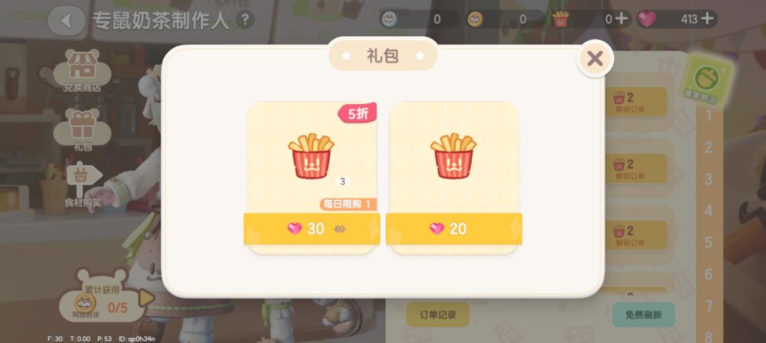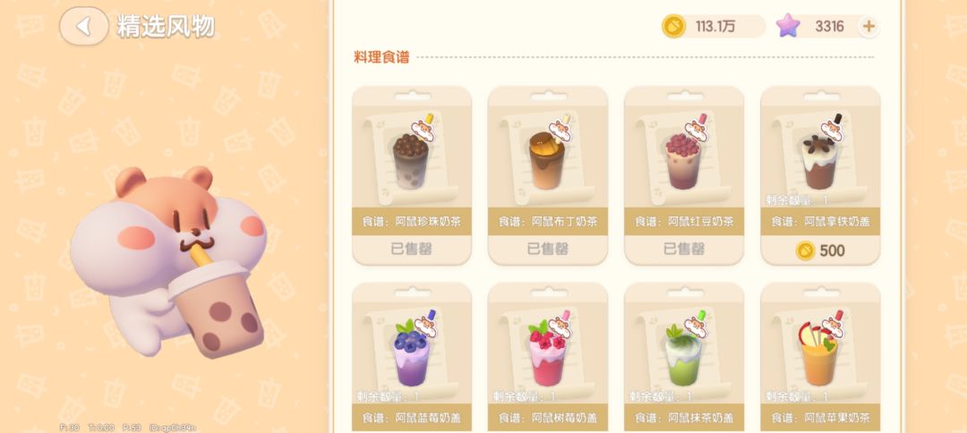 去到镇中心文艺街,收藏家的上方,就可以看到仓鼠开设的奶茶店啦,找它买食谱和限定食材哦,买完食谱记得学习哦,食材每天限购150份。